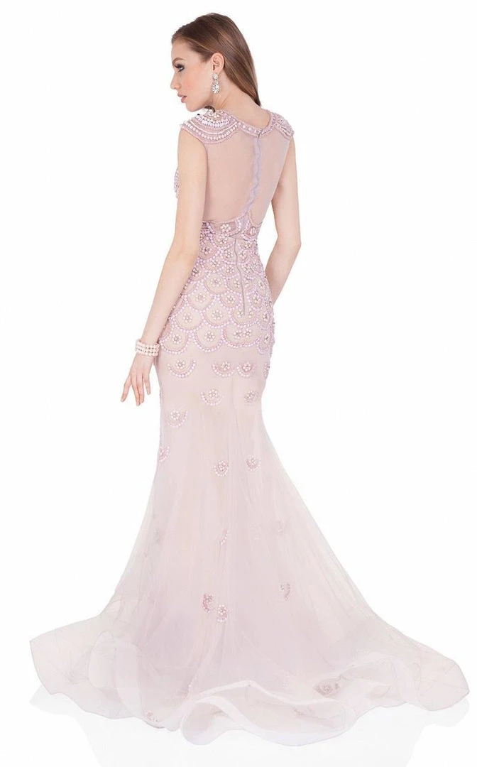 | Details: | Jewel neckline, Cap sleeves, Full length beaded embellishment, Illusion back, Mermaid silhouette |