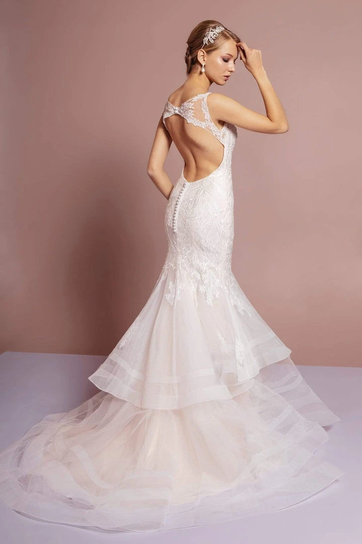 Be the embodiment of pure feminine flair in this mesmerizingly ornate GLS by Gloria GL2689 dress. This long embellished dress features a sleeveless, bateau neckline with fitted bodice designed with an open back. The back is detailed with a trail of covered buttons. The skirt flatters your figure with a layered mermaid skirt and finishes in a horsehair hemline and sweep train. Sparkle with utmost elegance as you radiate a regal style in this GLS by Gloria creation.