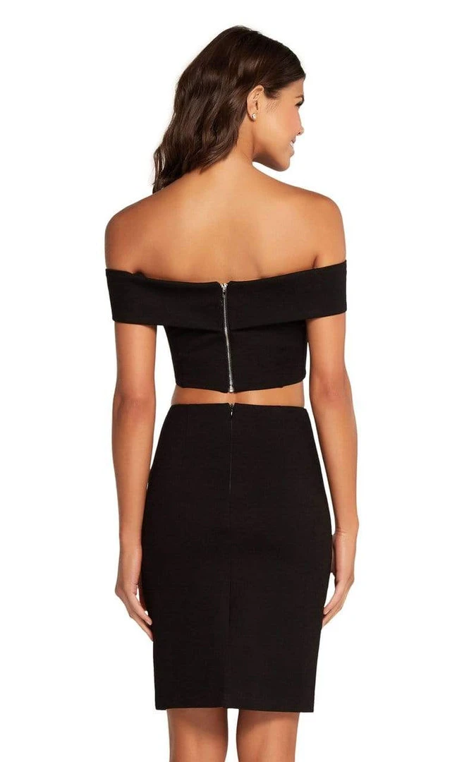 Get an instant attitude in an edgy cocktail dress by Harper and Lemon 22107. The crop top is fitted with a fold-over off-shoulder neckline. Exposed at the midriff, this fashionable two-piece ensemble will hug your figure to the glamorous mid-thigh hem for a charmingly party style that is perfect for any special event. This creation by Harper and Lemon will surely excite and delight your party mood.