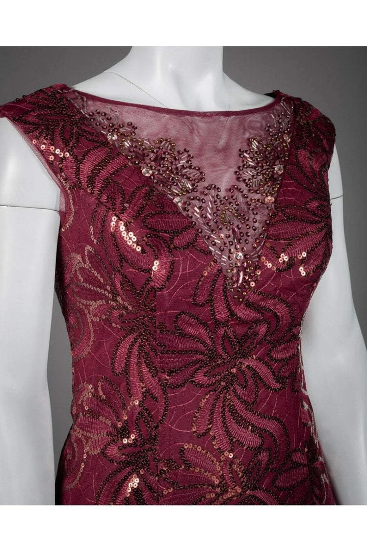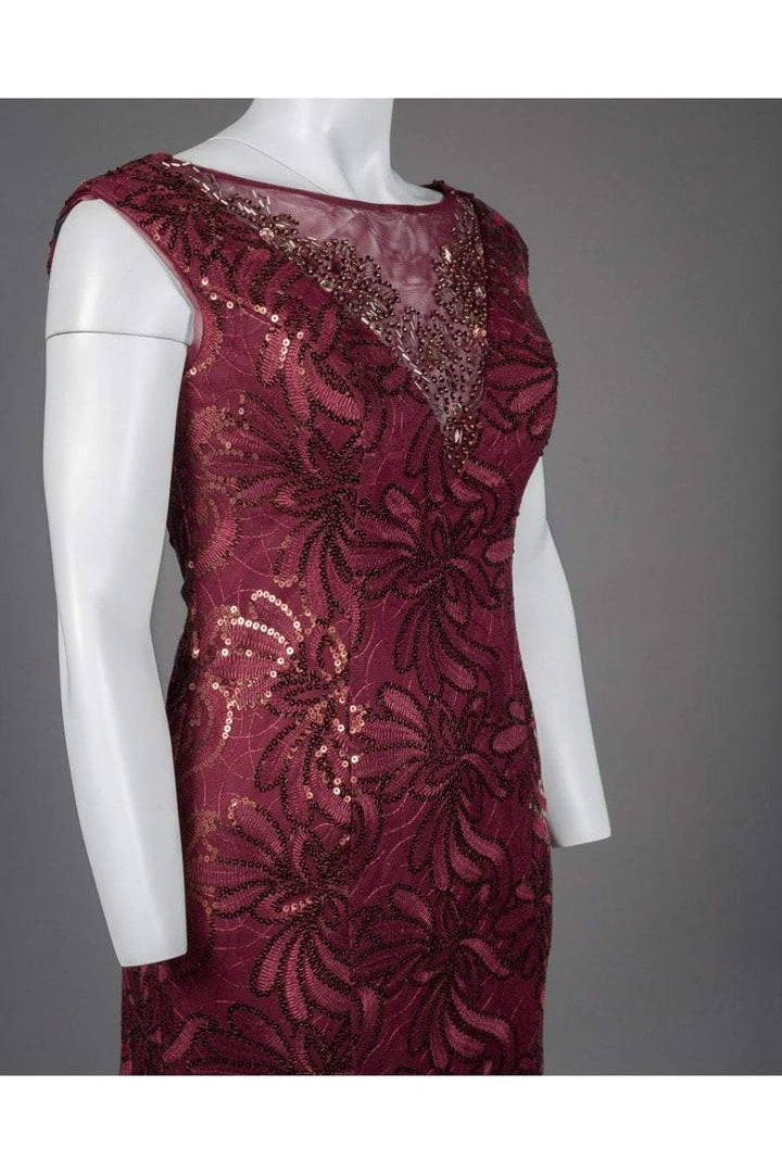 | Details: | Cap Sleeves, Floral Sequined, Beaded V-Design, V-Open Back, Back Zipper Closure, Full Length Hem |