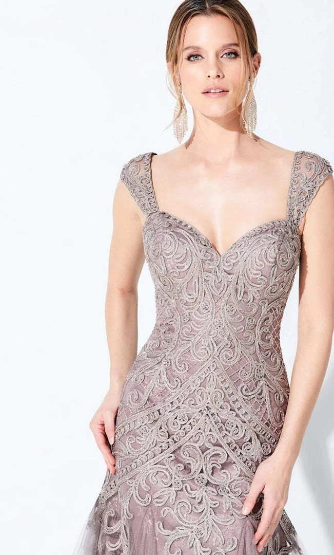 Look lovely in this timeless Ivonne D by Mon Cheri 220D26. Crafted in embroidered metallic tulle fabric is a cap sleeve, sweetheart neckline gown. Featuring the beaded handiwork on the dress is an open back and a full train that will make your night more magical. A matching shawl is included. This Ivonne D by Mon Cheri is specially designed to make that special occasion worth reminiscing.