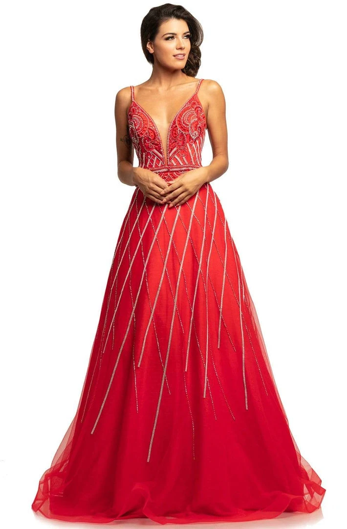 | Details: | Sleeveless, Beaded Spaghetti Straps, Illusion Inset, Intricate Scalloped Motif, Embellished Waist, Plunging V-Open Back, Back Zipper Closure, Horsehair Trim, Full Length Hem |