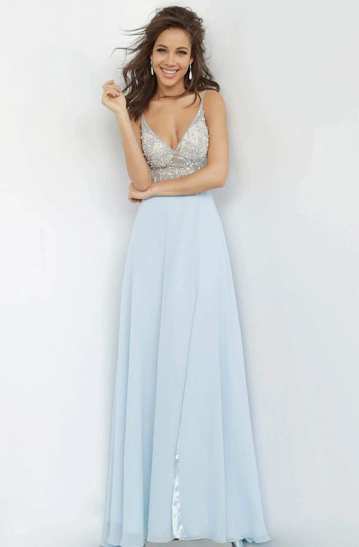 | Details: | Jeweled Spaghetti Straps, Illusion Bodice, Crystal Ornate, Plunging V-Open Back, Back Zipper Closure, Beaded Waist, Chiffon Skirt, Sweep Train |