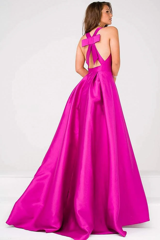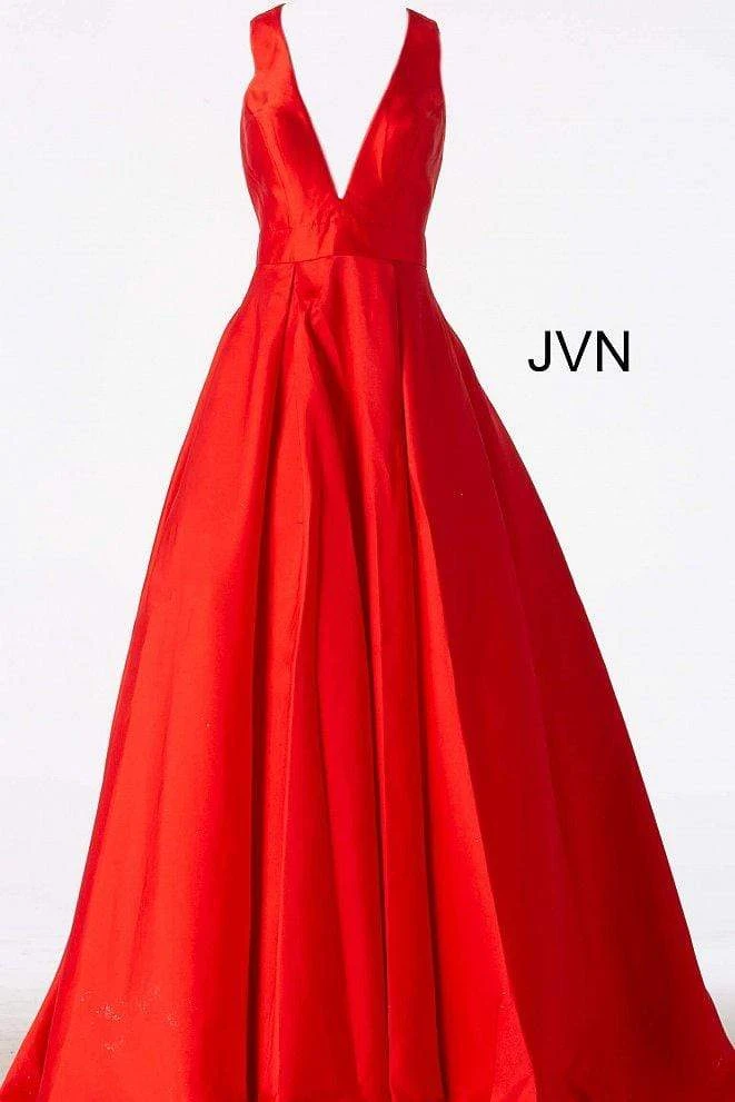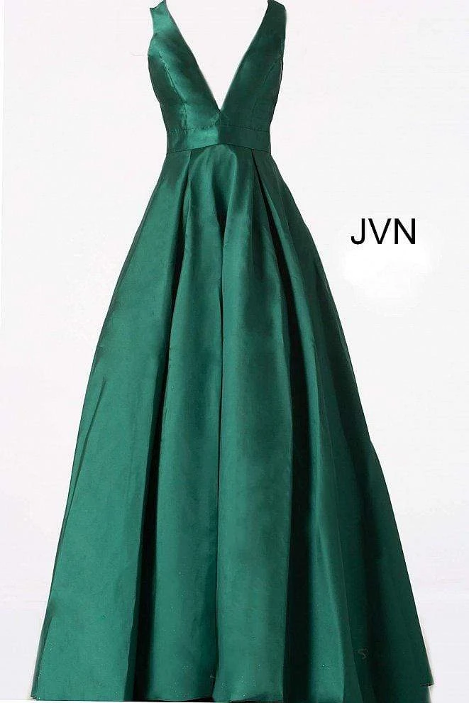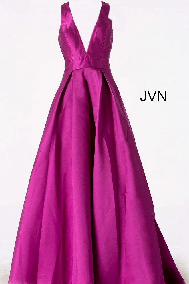 V Neck Mikado Prom Ballgown with Pleated Skirt JVN47530