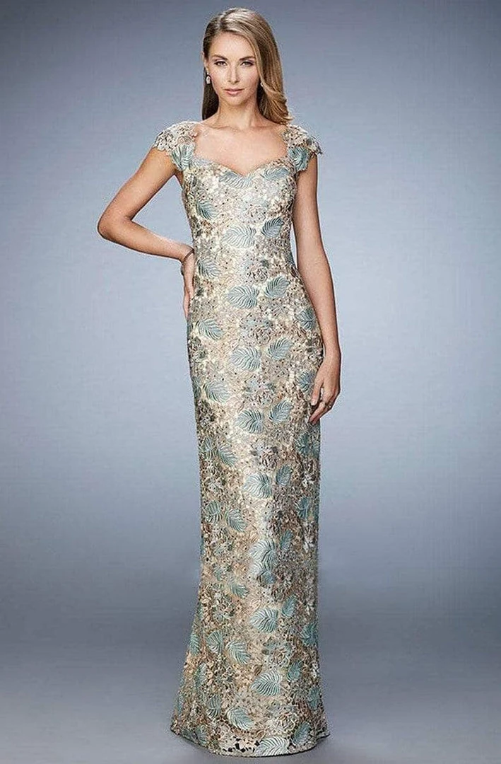 Portray the rich variety in design of this La Femme 22984 evening gown. This dress has cap sleeves and a sweetheart shape. Rich lace heavily bedecked the entire form-fitting silhouette with a high sheen finish. The skirt has soft movement and finishes with a full length hem. This dress also features a center back slit for ease movement. Look instantly glamorous in La Femme’s unique gown that’s sure to draw attention.