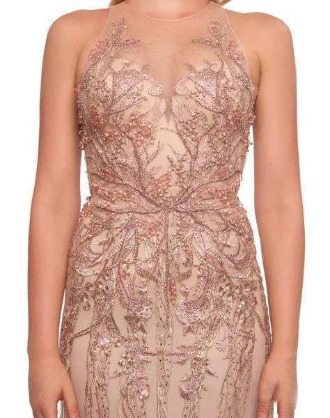 Be the lady of the night in this design by Mac Duggal Couture 50512. Captivates in a sleeveless, illusion halter neckline with sweetheart lined bodice flattering in mesmerizing appliques. The dress has a full length trumpet skirt with sweep train finish. This Mac Duggal look is a brilliant pick for any special party.