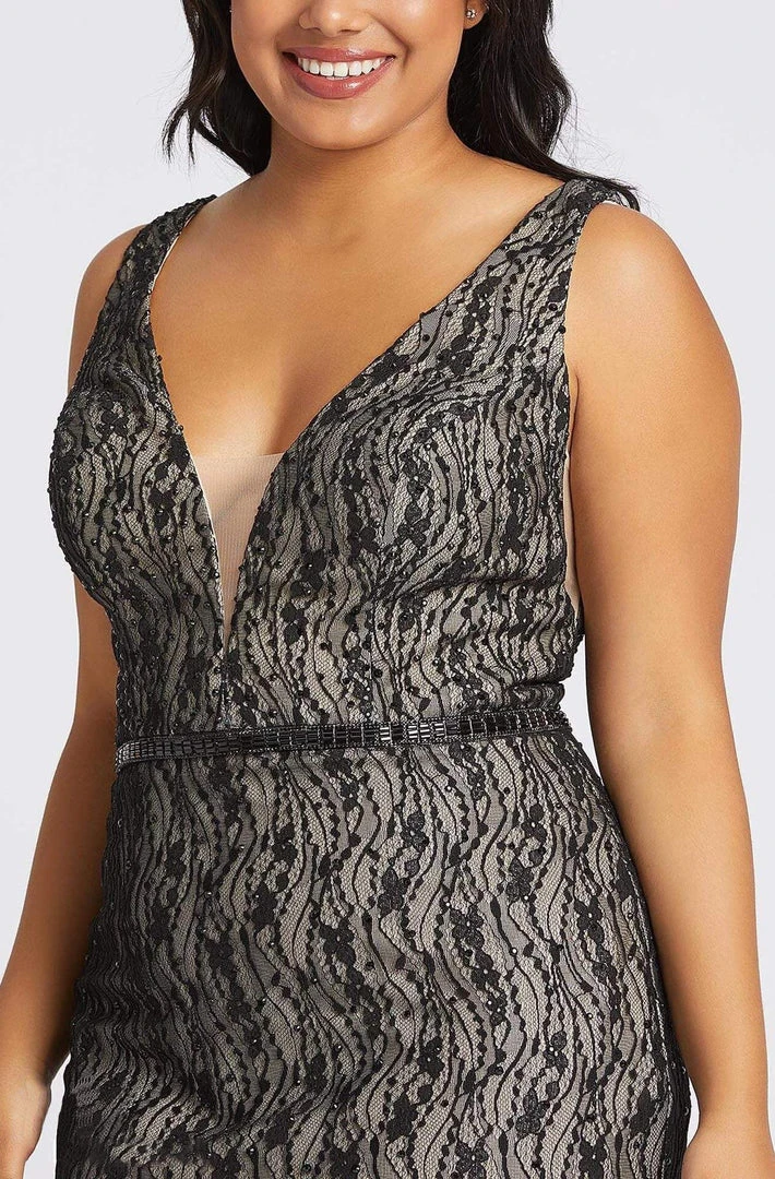 Flaunt your figure in this fabulous dress by Mac Duggal Fabulous 48995. This long dress is made with lace throughout and features plunging neckline and sheer paneling on a fitted bodice. It has thin band around natural waist and it parades a long column silhouette that also comes with sweep train. Sway to the music on your special night in this mellifluous evening set by Mac Duggal.