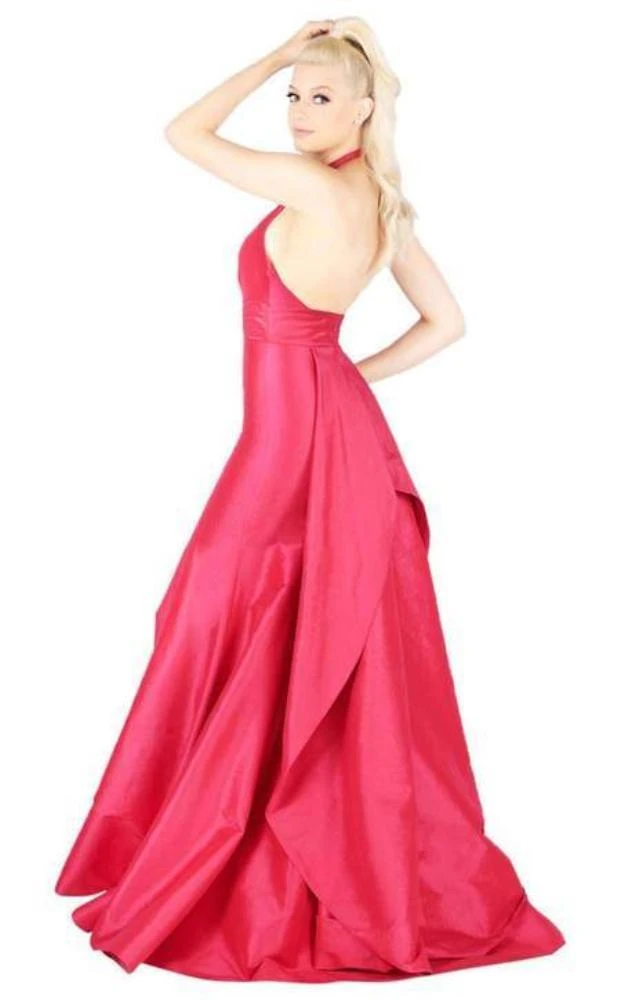 Opt to be the muse of the evening as you make their hearts flutter in this stunning Mac Duggal 12032 creation. Lustrously sculpted on a fascinating stretch Taffeta, this knockout features a plunging Halter neckline with fine pleats on the bodice. Hugged at the midriff with a large plated band, this ensemble reveals a backless design. Seam line sculpts the hip fitting skirt before it flutters down to a mermaid hemline that brushes the floor in exquisite style. The cape on the skirt adds dramatic volume as you turn around on this brilliant ensemble. Shine in dazzling panache as you sway on the dance floor in this captivating Mac Duggal Flash masterpiece.