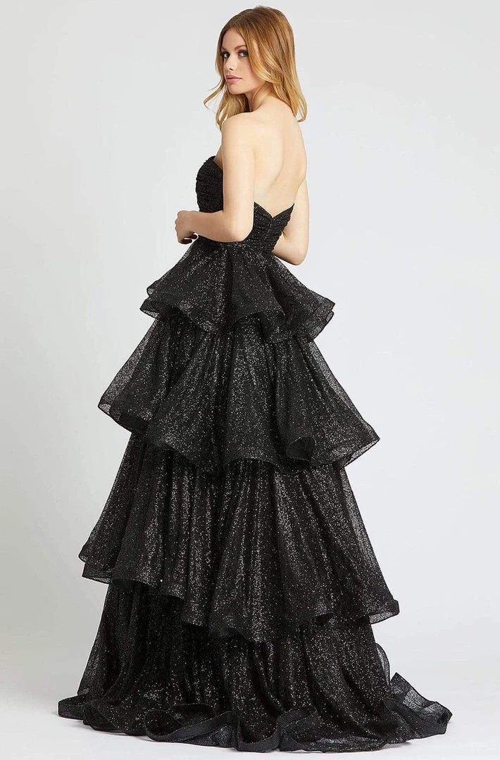 Exude that vibrant personality in this ravishing gown by Mac Duggal Prom 67195. Makes a statement in a strapless, sweetheart neckline with pleated bodice. This glittering gown has a back zipper closure and the skirt brings drama with a tiered A-line silhouette and sweep train finish. Feel dainty and feminine in this enchantingly designed Mac Duggal look.