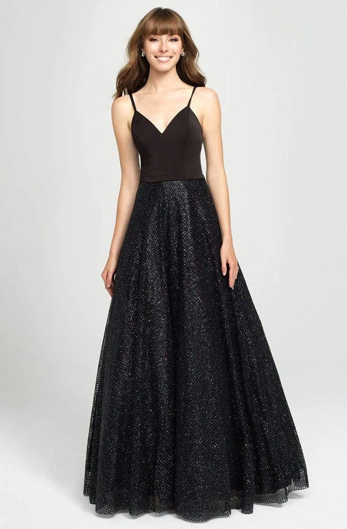 Attract the attention of the upscale crowd while glowing in this Madison James 19-100 creation. Sleekly tailored with sculpting lines on a satin bodice, this beauty shows a deep v-neckline secured with thin straps. Designed with a mid-open back and a slender waistband, the crosshatched A-line skirt sparkles while you turn with its full-length hemline. Look like a sophisticated siren in this fascinating Madison James masterpiece.