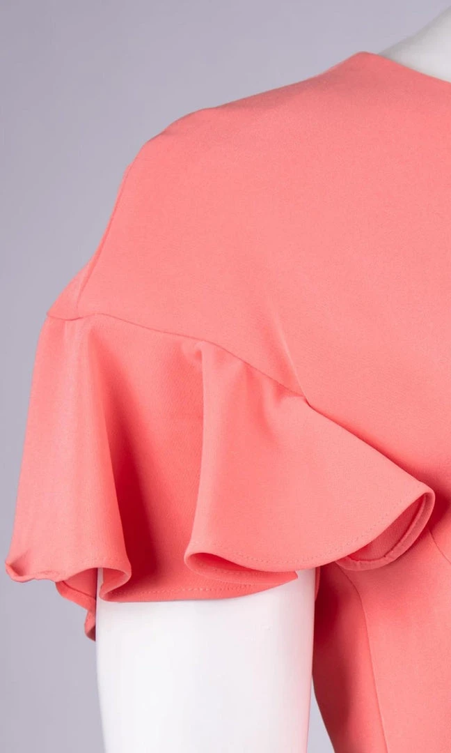 | Details: | Crepe Fabric, Ruffled Short Sleeves, Full Back, Back Zipper Closure, Flounce Hem, Fully Lined, Knee Length |