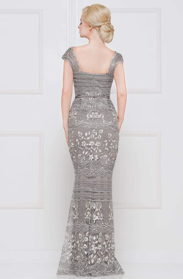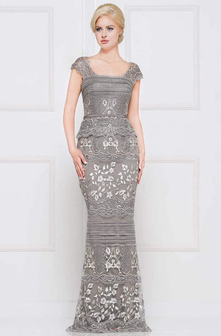 Mesmerize everyone in this charming look by Marsoni by Colors M264. Fashions a square neckline with cap sleeves. This lace dress is cinched in a thin band at the waist and is accentuated with a peplum detail. It has a square back and zipper closure while the skirt highlights your curves with its full length fit and flare silhouette. This Marsoni by Colors dress is sure to make a daring statement in that special affair! Model is wearing Grey color.