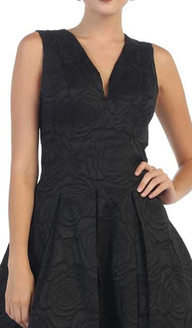 | Details: | Jacquard, Floral pattern, Sleeveless, Closed back, Pleated skirt, Back zipper closure |