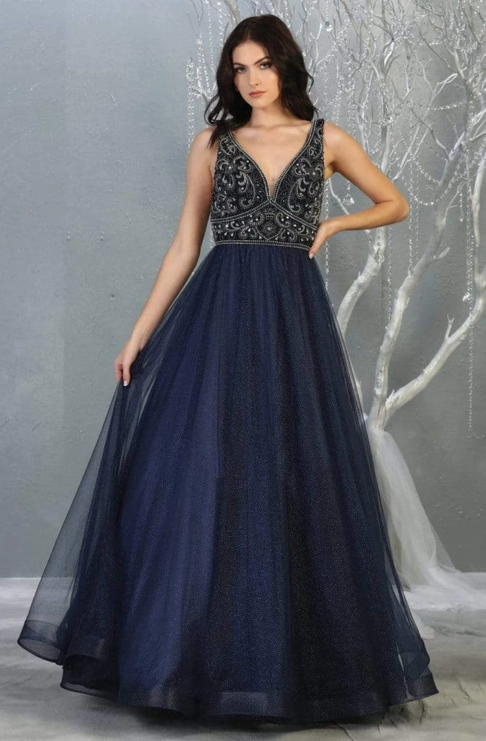 May Queen - RQ7860 Embellished Plunging V-neck A-line Gown