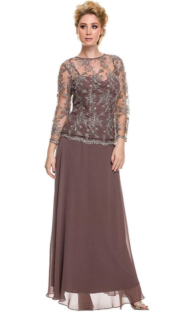 Wow the crowd as you walk in this sheer three-quarter length sleeve dress with embroidery by Nox Anabel 5096. Portrays a jewel neckline with sleeved bodice adorned with beautiful embroidered appliques. The full length skirt gracefully flows to the floor and has a zipper closure. This Nox Anabel dress is perfect for prom, pageant, or a black tie event.