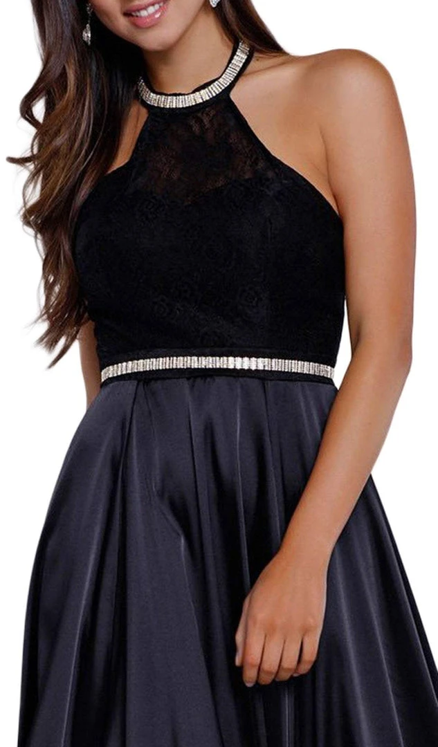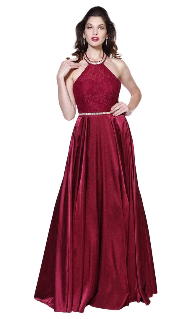 Look like a dreamy vision at your sumptuous event in this Nox Anabel 8198 creation. This elegant long A-line dress reveals a sleeveless halter neckline with beaded collar and lace embroidered bodice over a sweetheart line. The waist is cinched in a beaded band and exhibits a mid-open back. The dress has zipper closure and its A-line satin skirt gently flares and finishes in a full length hemline. Make memories worth reminiscing in this enticing Nox Anabel masterpiece.