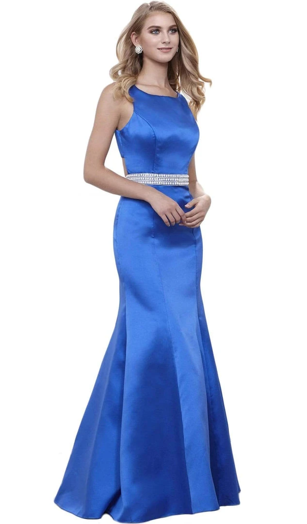Wow everyone in this sophisticated Nox Anabel 8320 creation. Gorgeously flaunting sculpting seams along the bodice, this stunning piece features a jewel neckline and a scoop detail with an alluring cutout on its back. Cinched with a beaded waistband, the full length trumpet skirt cascades spectacularly as it ends with pizzazz and style. Make the crowd stop and stare at your newly found iridescence in this sophisticated Nox Anabel masterpiece.
