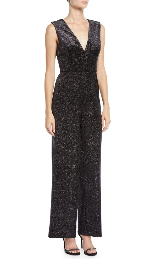 Turn heads instantly when you wear this Aidan by Aidan Mattox MN1E203728. This edgy jumpsuit features a sleeveless V-neckline. Made in metallic knit, the pants reveals a relaxed straight legs silhouette in floor length hem. Fascinate the crowd wearing this exceptional Aidan by Aidan Mattox masterpiece.