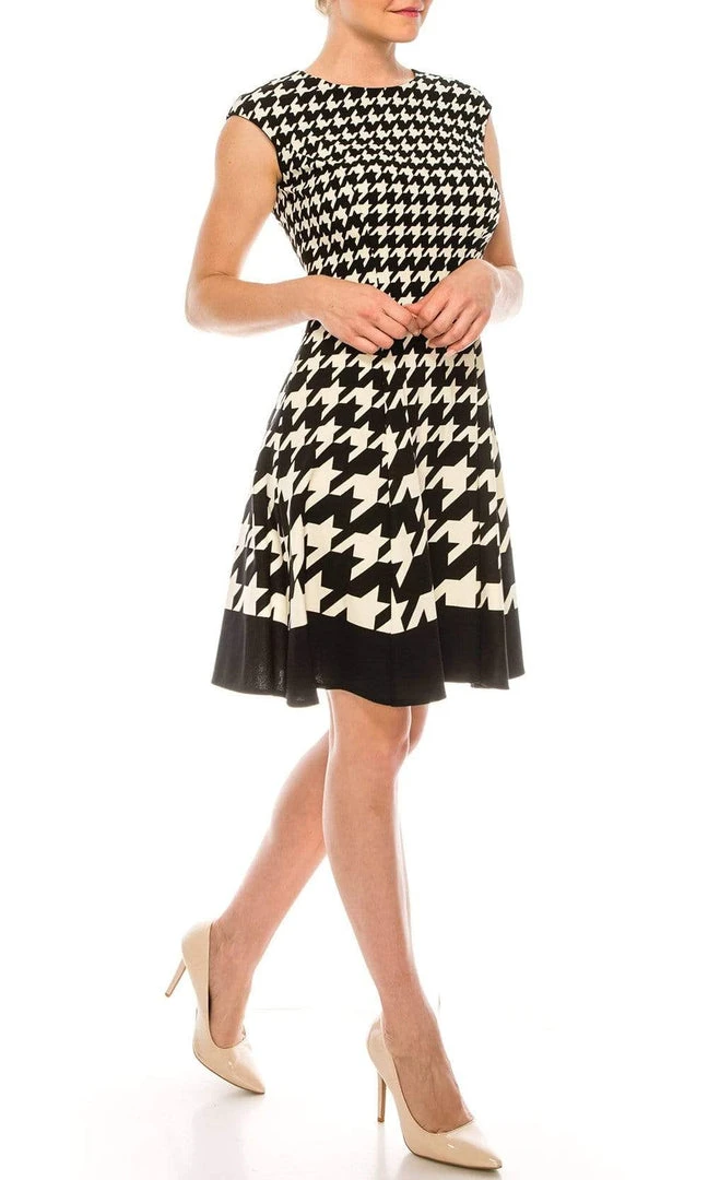 Get that glamorous casual feel as you wear this London Times T5305M dress. This mid-thigh length dress fashions a jewel neckline supported by cap sleeves in a fitted and printed bodice. Revealing an A-Line silhouette, this also shows a full back with back zipper closure to complete the look. Charm everyone from all angles as you shine all night long in this London Times creation.