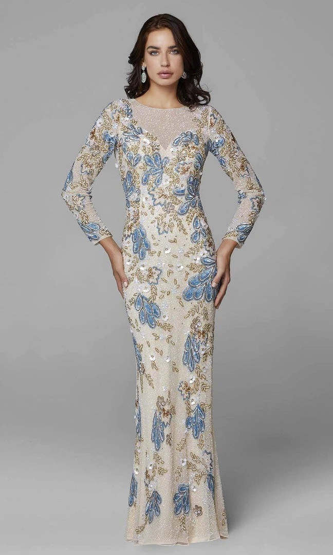 Turn yourself into a head-turning sensation by slipping into this utterly fetching Primavera Couture 3675 masterpiece. The whole dress adorns in sparkling sequins, as the fitted bodice showcases a bateau and long sleeves. The skirt has a sheath silhouette which finishes to a full length hemline. Orchestrate your moment to stand out in this Primavera Couture ensemble.