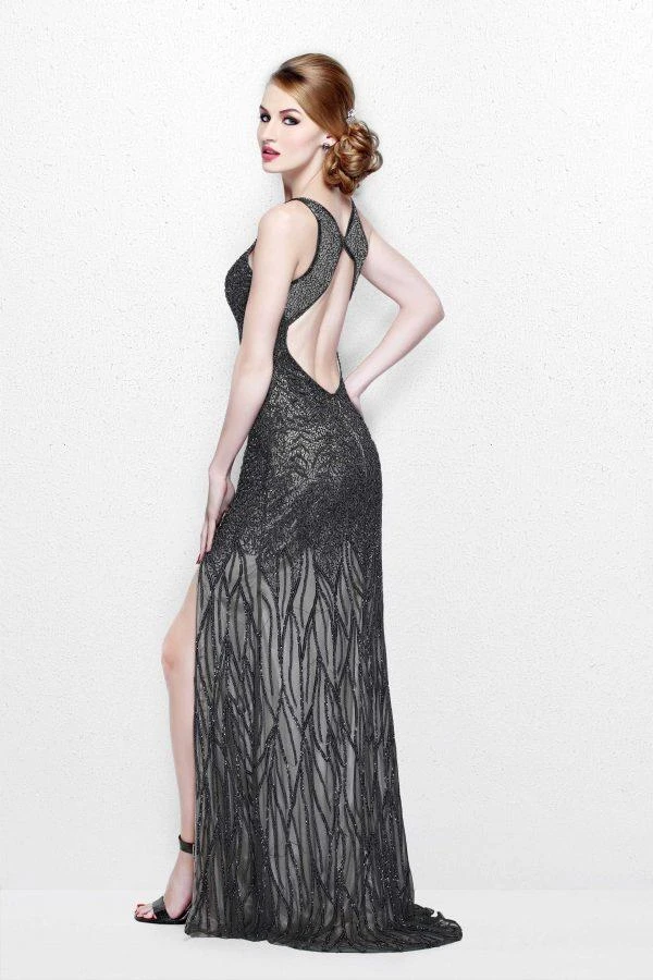 Make it your moment to shine in this evening gown by Primavera Couture 1832. This dress is sleeveless with a V-neckline. Fine beaded detail works throughout the gown. The bodice is fitted. The skirt has slight movement with a slit at one side. This gown finishes with a full length hem. This stunning Primavera Couture is sure to get you noticed.