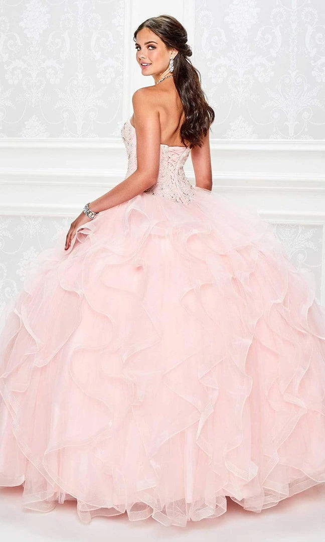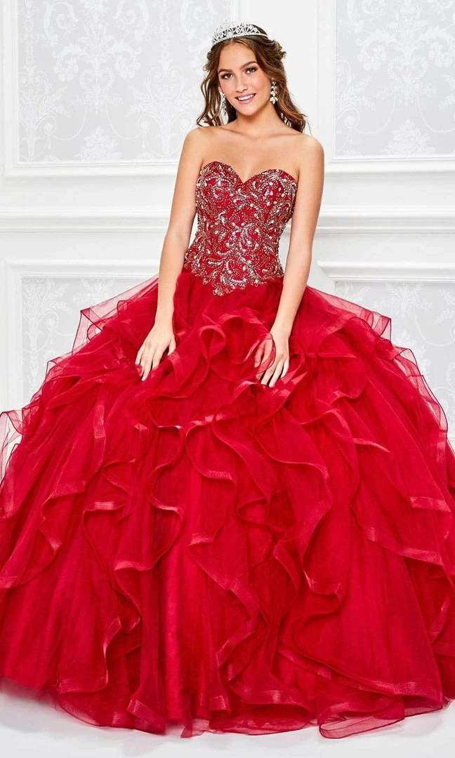 Look immaculately gorgeous in this Princesa by Ariana Vara PR11943. A pronounced sweetheart neckline crowns the fitted bodice intricately designed with magnificent beadworks. The ruffled ball gown skirt provides this dress a dramatic look. This dress comes with a matching shawl. You are more than gorgeous when you wear this unbeatable Princesa by Ariana Vara creation. Find more quinceanera dresses!