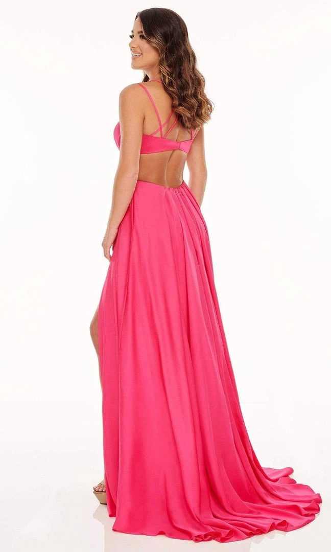 Be a vamp in an alluring dress from Rachel Allan 70056. This satin gown pleases a sleeveless, sweetheart neckline with a fitted bodice and dual straps. The skirt forms a full length A-line silhouette with a leg slit and a sweep train finish. You’ll look fantastic in photos with a beautiful gown from Rachel Allan.