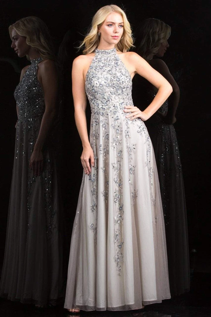 Appear like a modern princess in this lavishly ornate Halter top style gown by Scala 48858 . Features fitted bodice and cut-in shoulders to flaunt those sexy toned arms. Embellished with exquisite jewel beads that flows down throughout the rest of the dress, this A-line ensemble will let you dance and move flawlessly. This Scala creation is simply captivating!