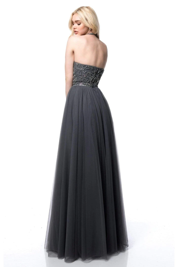 Be the embodiment of feminine beauty in this Sherri Hill 51604 creation. Embellished with faceted crystals on a cut-in bodice, this stunner shows an illusion halter neckline over a sweetheart lining and a mid-open back. Crowned with an embellished waist, the tulle skirt cascades glamorously into a full-length hemline. Glamour up for that idyllic event in this Sherri Hill masterpiece. Models are wearing the Blush, Gunmetal and Light Blue colors.