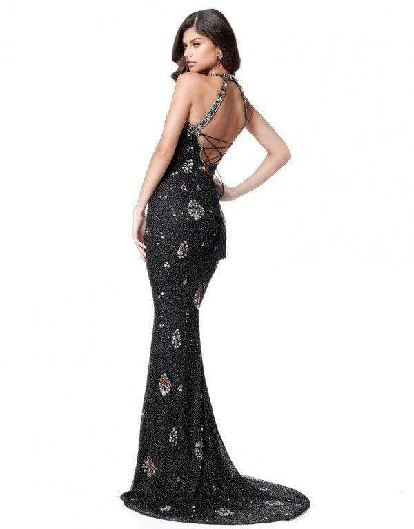 Brave the evening with temptress beauty and grace wearing this design by Sherri Hill 51661. This beaded gown parades in a sleeveless, halter neckline with fitted bodice styled with a strappy back. The skirt tapers at the thighs and flares at the bottom to a sweep train finish. You are statuesque in a posed gown from Sherri Hill.
