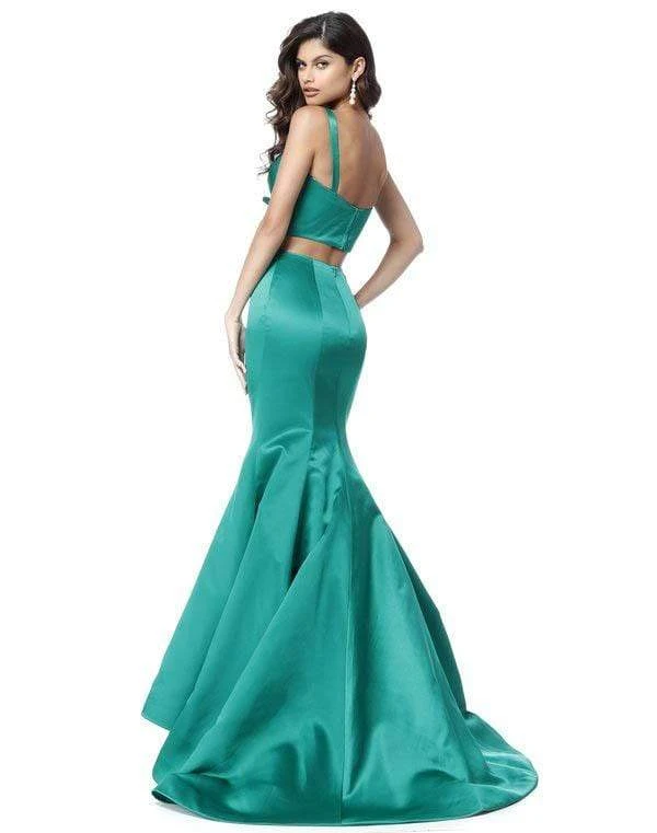 Embody a feminine and enigmatic style in this glamorous two-piece Sherri Hill 51712 creation. The gorgeous satin ensemble features a knotted style crop top bodice with twisted bow at the center, and draws V neckline with shoulder straps that tapers to the mid-open back. This gown shows off a bare midriff while the sleek mermaid skirt pours and shrouds the floor with a divine swoosh of sweep train. Exude a lavish vibe all throughout the night in this spectacular Sherri Hill masterpiece.