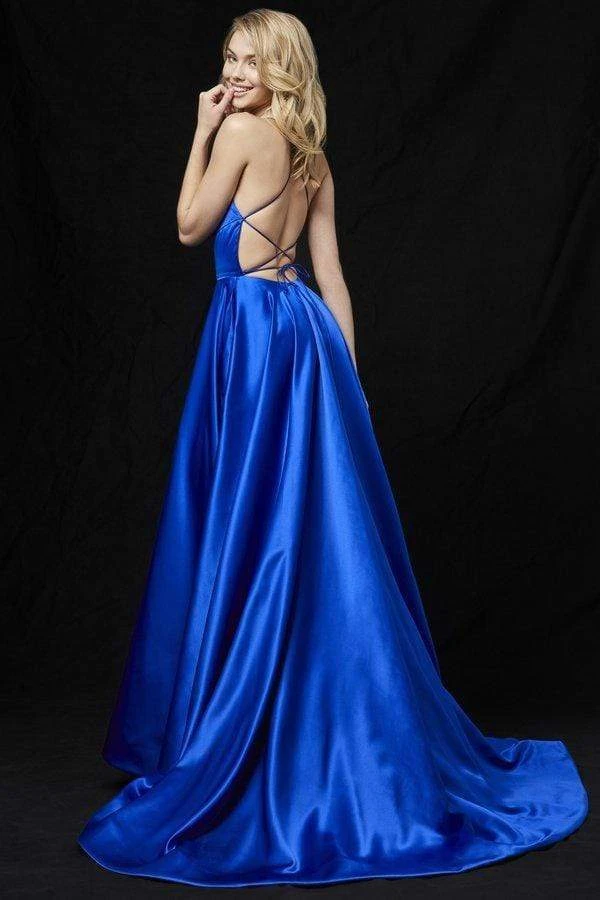Walk into that opulent event in pure confidence as you showcase your regal style in this Sherri Hill 52095 gown. This vibrant solid Mikado satin gown shows off a ravishing open back with strappy details that secures a fitted front bodice. Features a scoop neckline seam sculpted bodice and midriff and full length ballgown skirt complete with in seam pocket and a long front slit. This stunning ensemble finishes off with sweep train. The world is at your feet when you inspire in this fabulous Sherri Hill masterpiece.