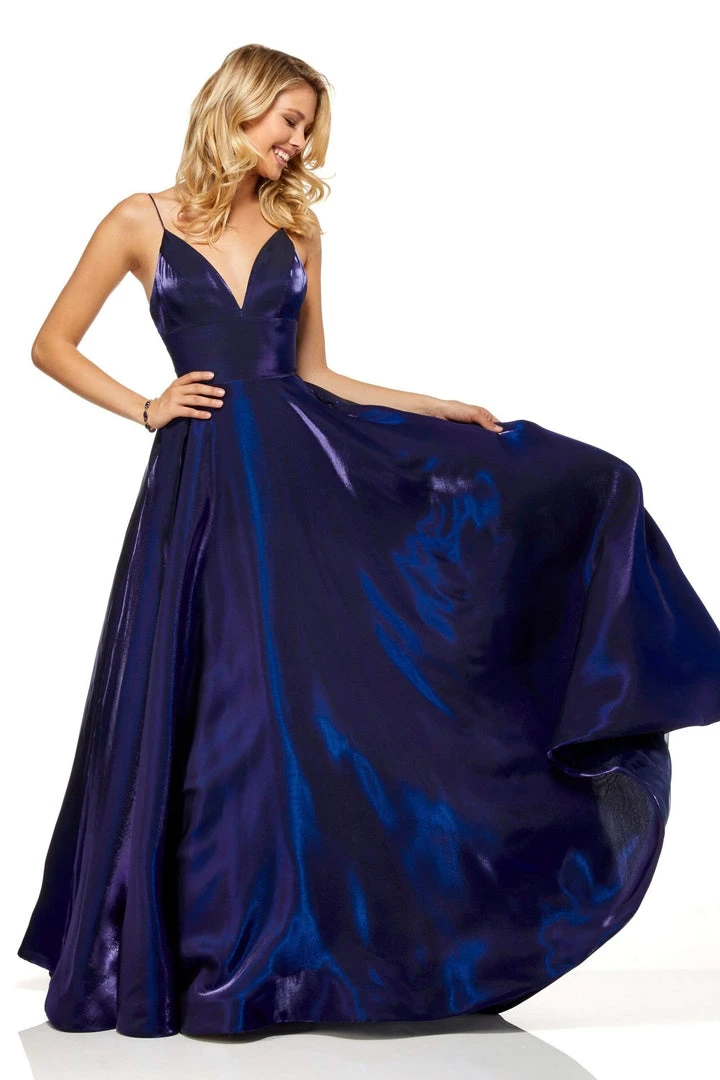 Show off your glamorous side when you appear in this stunning Sherri Hill 52424 ballgown. Beautifully tailored in shimmering iridescent satin fabric, this stunner features a fitted bodice, crowned with a V neckline. Spaghetti straps lend support to the bodice as it continues to the low back. Fabulous pleats and hip pockets adorn the long ballgown skirt as it elegantly finishes with a sweep train. Turn heads effortlessly with this Sherri Hill creation.