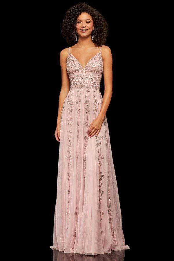 Be the lady of the night in this wonderful Sherri Hill 52461 evening dress. This floral flowing stellar showcases a V-cut neckline along the lavishly embellished bodice, which sparkles naturally along your special night. Rich beading flows down along the a-line skirt, providing you the perfect finishing touch to this dress. Make a lasting impression as you don this gorgeous Sherri Hill ensemble.