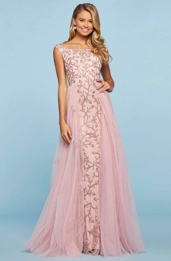 Dress to impress on your next formal event in this simple but captivating Sherri Hill 53542. This sleeveless beauty features a bateau neckline, adorned with beads and sequin detailing, and a zipper detailing. The skirt is in an A-line silhouette, featuring a sweep train. This Sherri Hill creation is simply breathtaking! Model is wearing pink.