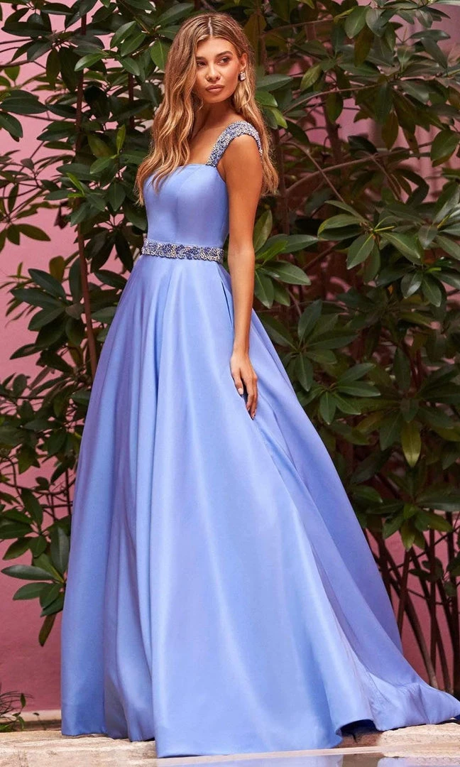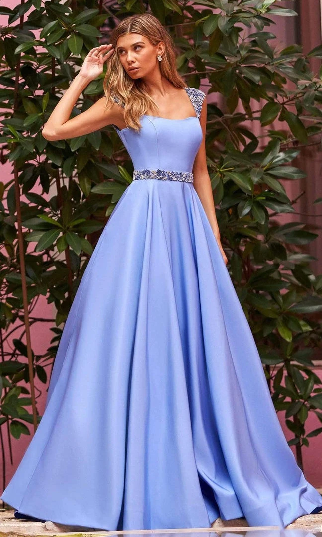 Embrace a style that is so elegant in this Sherri Hill 54875 creation. Exquisitely tailored with seams, the gown contours with a scoop neckline and bead-embellished cap sleeves. Crowned with an adorned waistband, the skirt flares into an A-line silhouette and a train. Exude a classy and feminine style in this Sherri Hill masterpiece. Model is wearing the Periwinkle color.