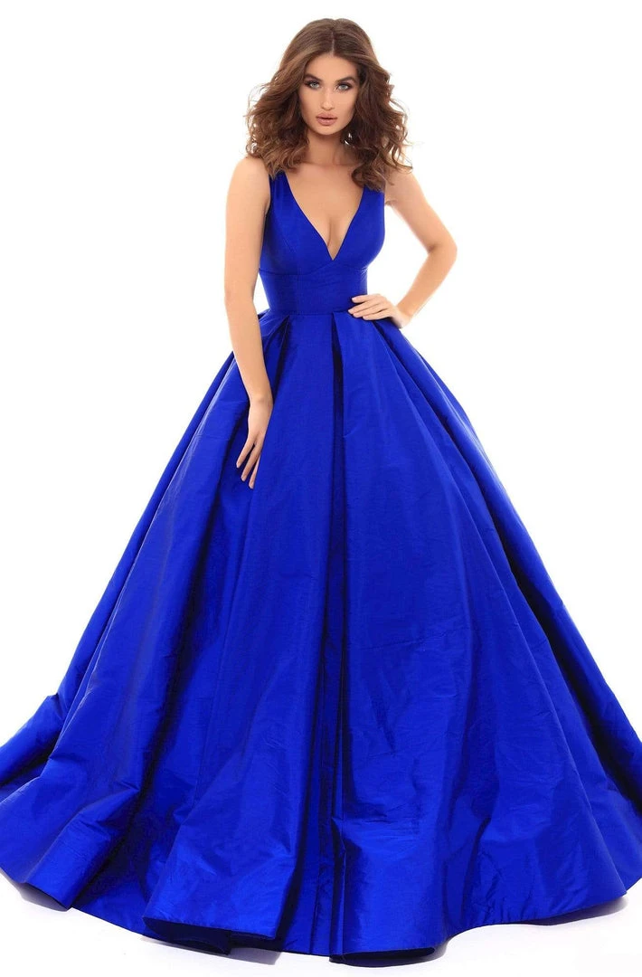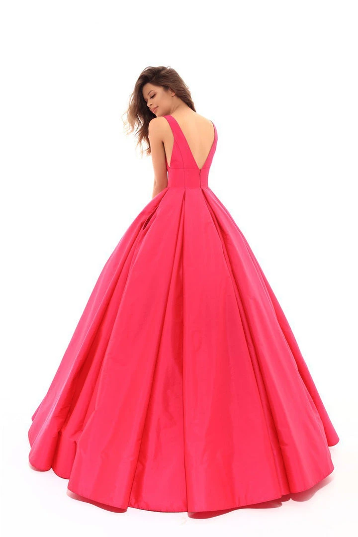 Glide into that spectacular black-tie event like an ethereal vision as you flaunt this gorgeous gown by Tarik Ediz 50402. This eye-catching vibrant taffeta gown features a V neckline and back, seam lined structured bodice and fitted waist defining a svelte fit. The pleated grand ballgown skirt perfectly complements the fitted bodice that is sure to display your natural beauty and grace on the red carpet. Turn yourself into a head-turning sensation overnight in this queenly design by Tarik Ediz.