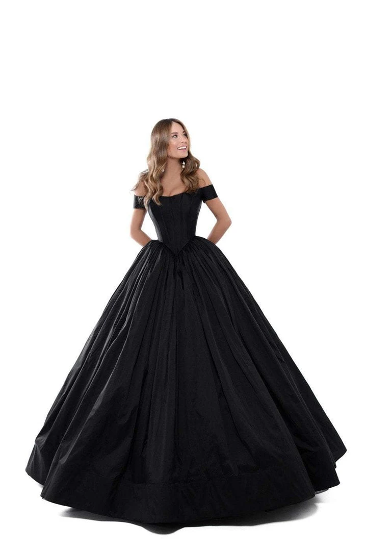 Wow the crowd as you stand out in this exceptional gown from Tarik Ediz 50509. Flatter your figure with this eccentric ballgown that boasts a portrait off shoulder neckline and fitted corset style bodice with the classic Basque waistline leading to the grandiose skirt. This solid taffeta ballgown reveals a lace-up back style for a much contoured fit. Flap the dress as you take your sit to show off those sexy legs on clouds of frothy layers of tulle. This ultimate ballgown by Tarik Ediz will make you feel all royal and radiant looking on that special day.
