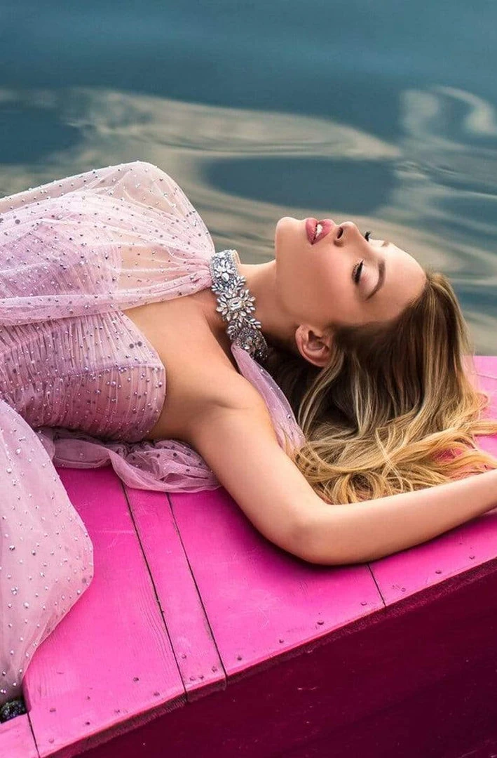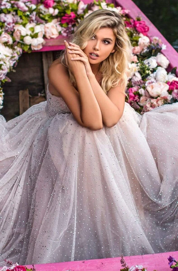 Waltz into the party and feel like a queen in this design by Tarik Ediz 50764. This embellished piece features a strapless, sweetheart neckline with a corset bodice. The skirt flourishes a ballgown silhouette. This masterpiece is tailored with a matching cape detail. Get on the best-dressed lists in this lavish creation from Tarik Ediz. Models are wearing Pink and Stone colors.