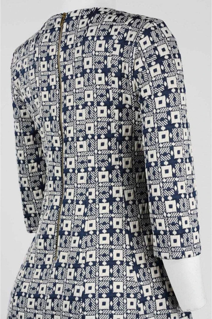 Make it your best day ever in this Taylor 9209M dress. This Jacquard dress features a V neckline and quarter length sleeves with bodice and skirt in geometric abstract pattern. The dress finishes at above the knee length. Look sophisticated and mature in this simple yet chic Taylor short dress.