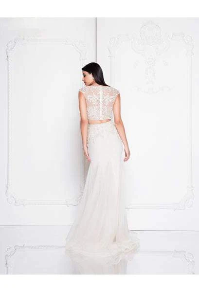 | Details: | Two piece, Cap sleeves, Crop top, Embroidery, Beading, Jersey trumpet skirt, Sweep train |