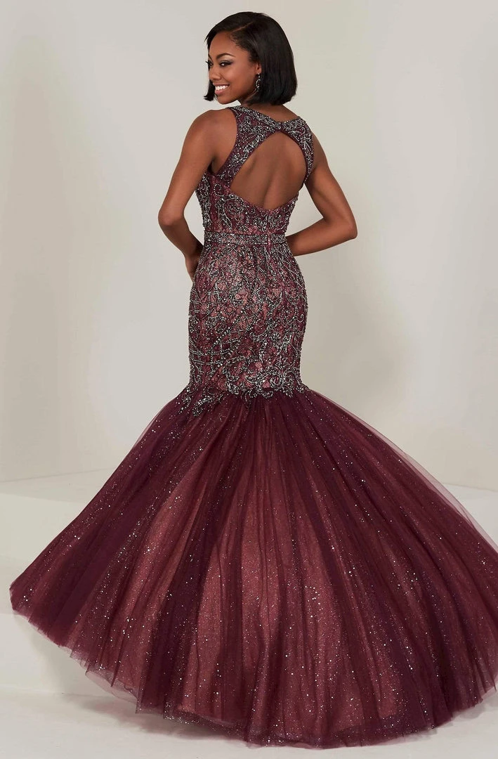 Claim the top of the best-dressed list while glowing in this Tiffany Designs 16370 creation. Shimmering with metallic beadwork in an intricate pattern, this fascinating piece shows a scoop neckline and a cutout back on a sleeveless bodice. Spilling with embellishments forming a slender waistband, the mermaid skirt unveils layers of shimmering tulle that cascades down into a gorgeous train. Inspire the devotion of many in this mesmerizingly designed Tiffany Designs masterpiece.